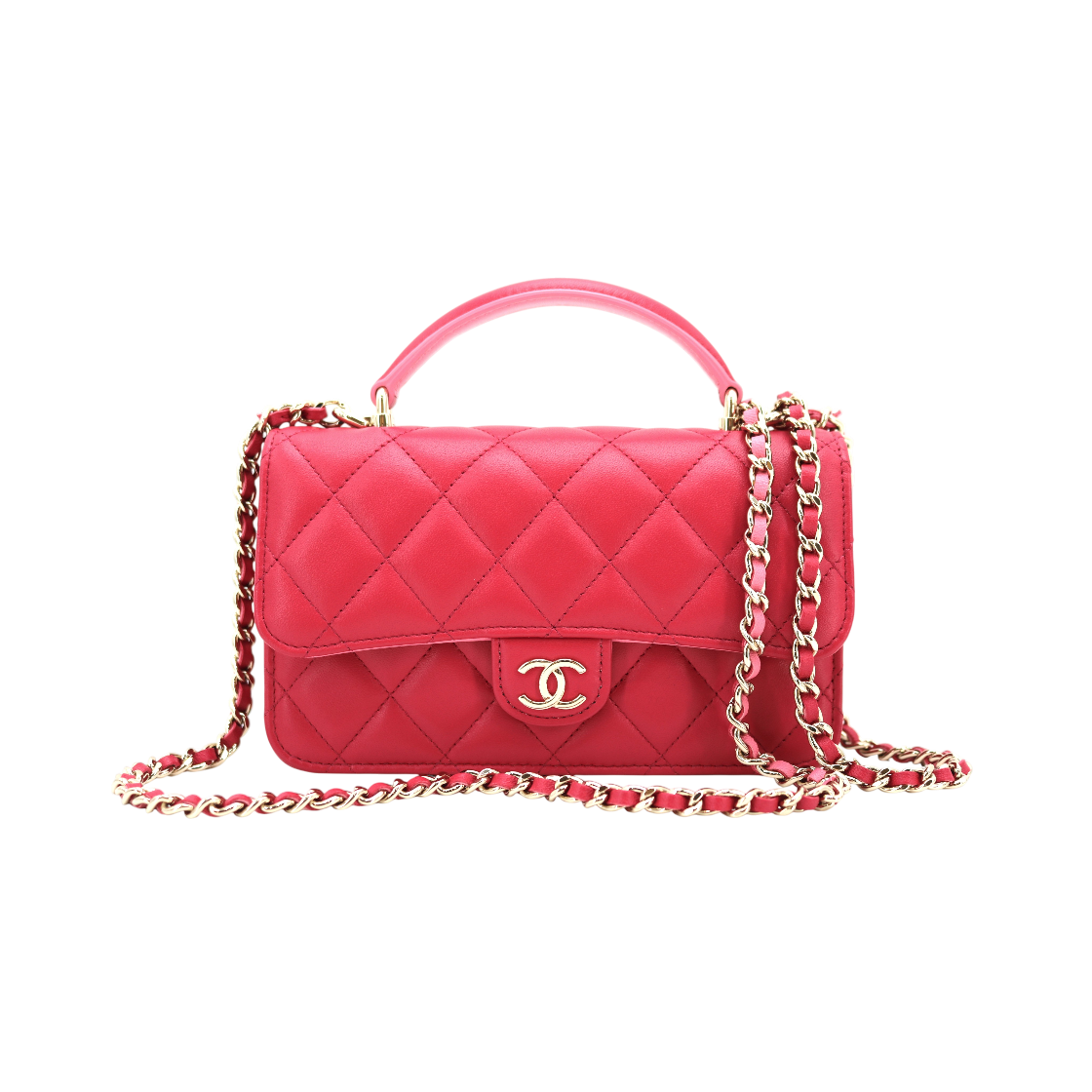 샤넬 핸들 장식의 미니 플랩백 램스킨 & 골드 메탈 블랙