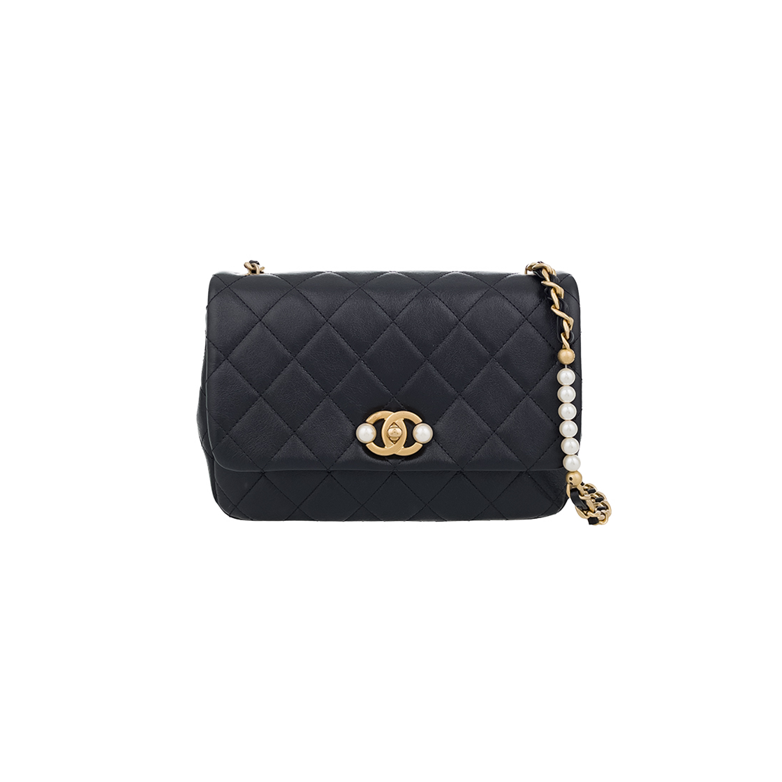 샤넬 진주 체인 플랩백 블랙 빈티지금장 카프스킨(5ET2123)