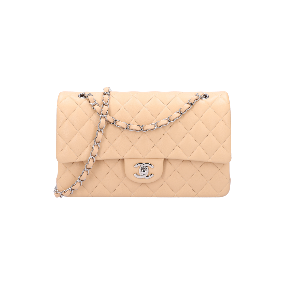 샤넬 A01112 클래식 미디움 플랩백 램스킨 베이지 은장