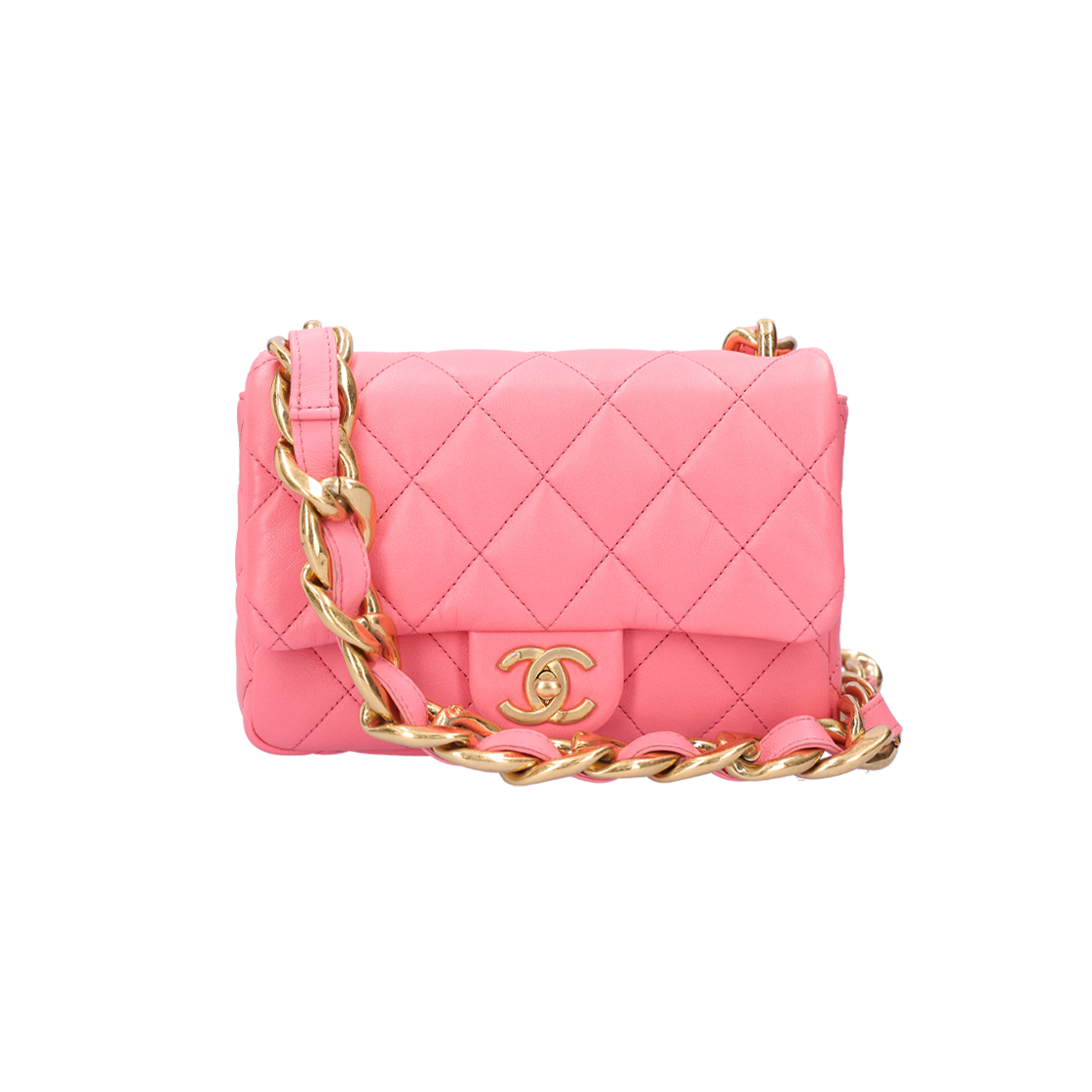 샤넬 AS3214 펑키 타운 스몰 플랩백 램스킨 핑크 금장