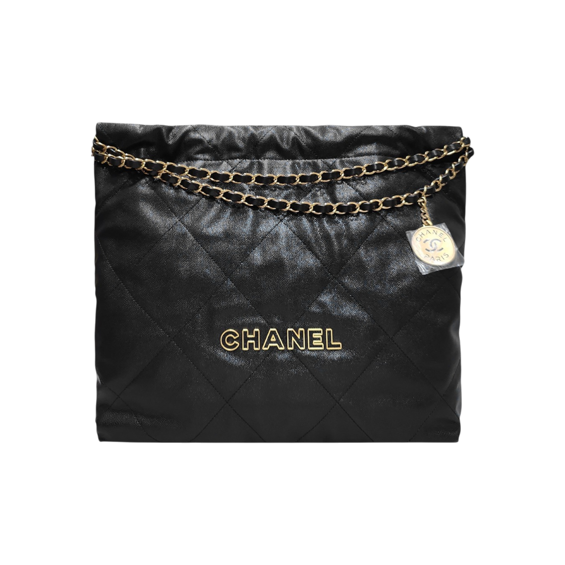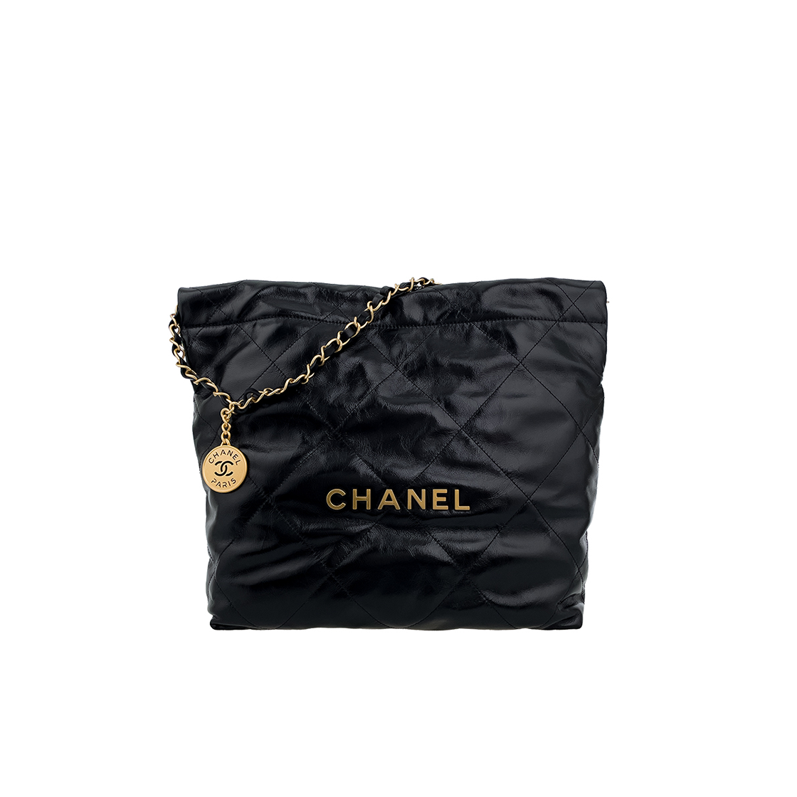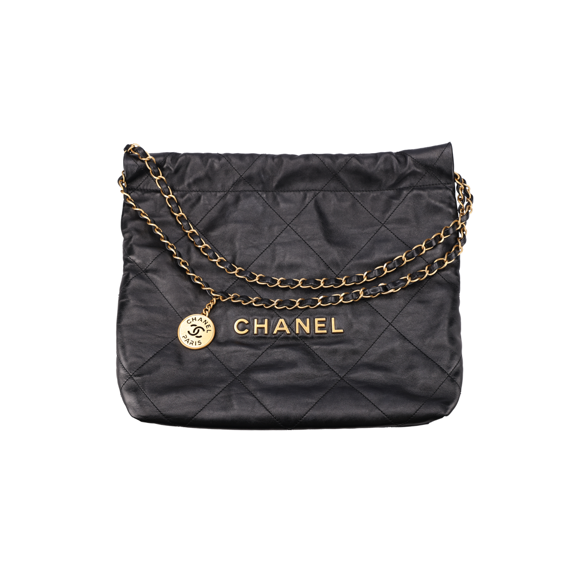 샤넬 22 미디움 핸드백 샤이니 카프스킨 & 골드 메탈 블랙