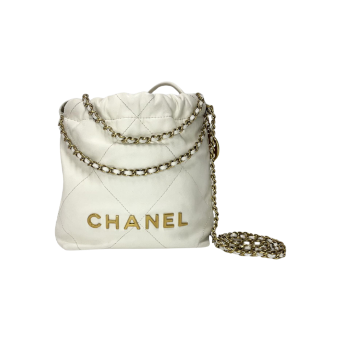 샤넬 22 미니 핸드백 샤이니 카프스킨 & 골드 메탈 화이트