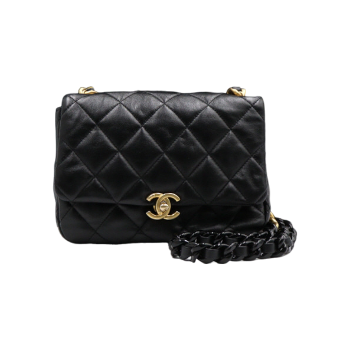 샤넬 AS2975 22시즌 CC 로고 블랙 램스킨 스몰 플랩 금장 체인 숄더백 겸 크로스백 aa36066