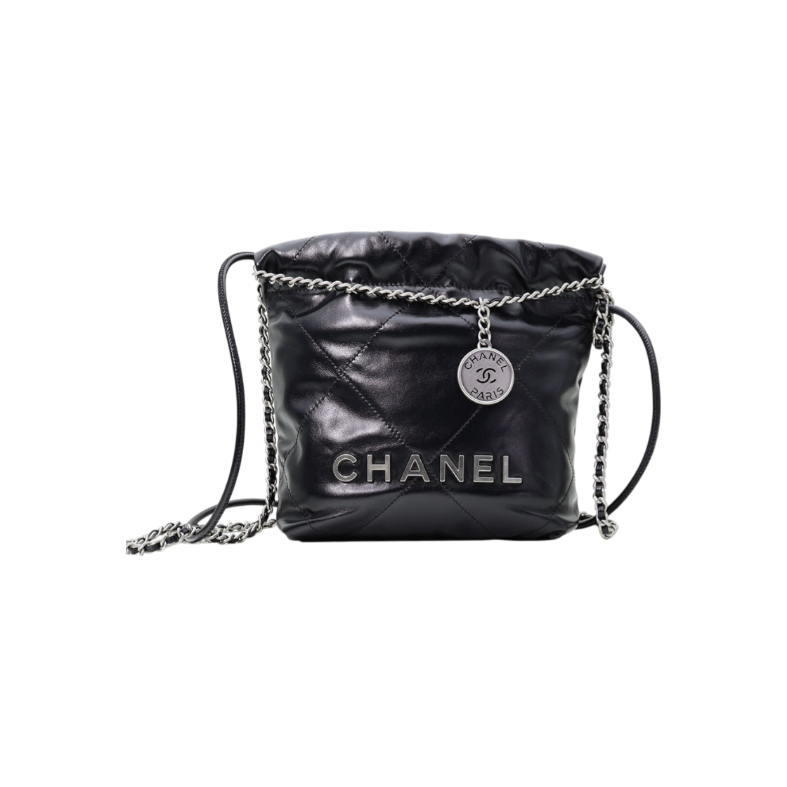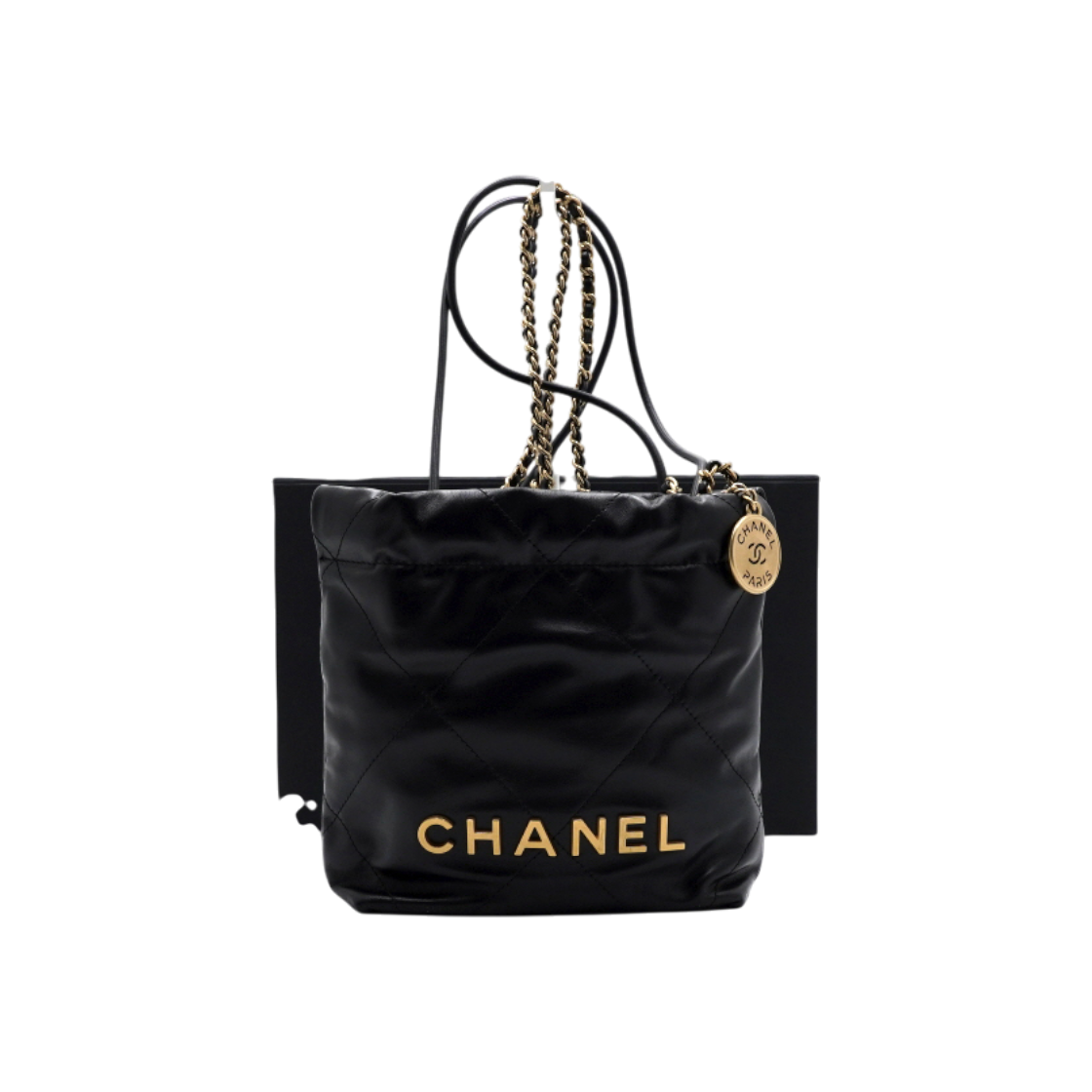 샤넬 22 미니 핸드백 샤이니 카프스킨 & 골드 메탈 블랙