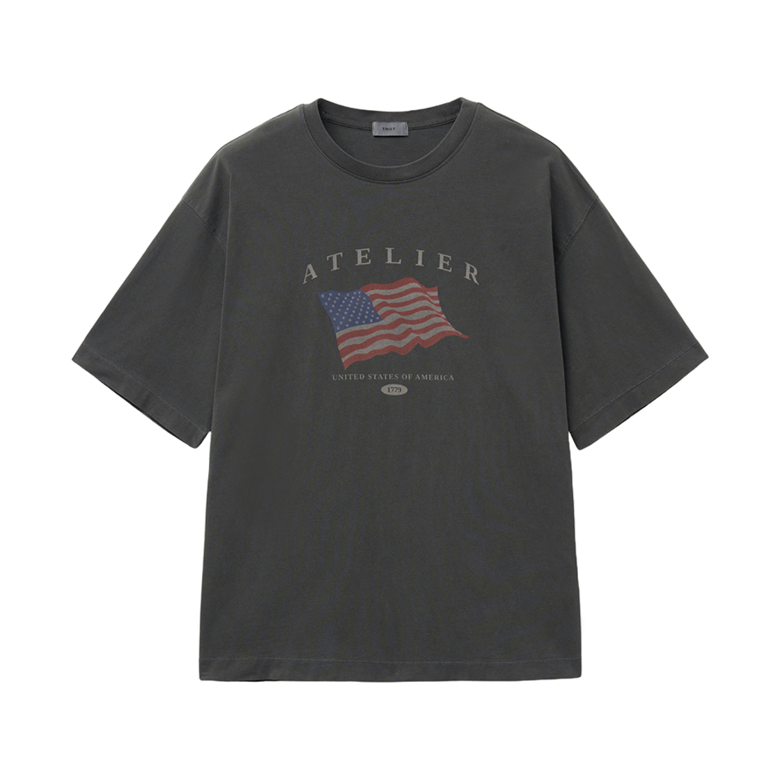 티엔지티 다크그레이 오버핏 성조기그래픽 티셔츠