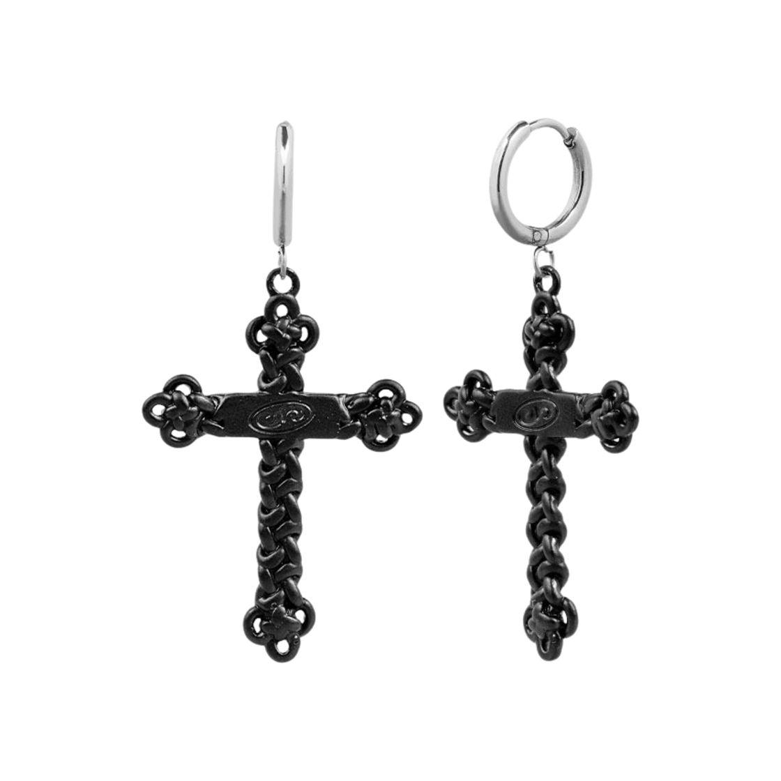 센티멍 넘버 474 매듭 십자가 이어링 블랙