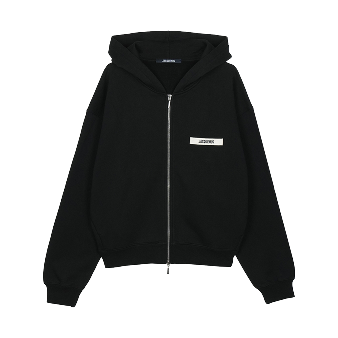 자크뮈스 르 후드 그로 그레인 로고 지퍼 후드 블랙