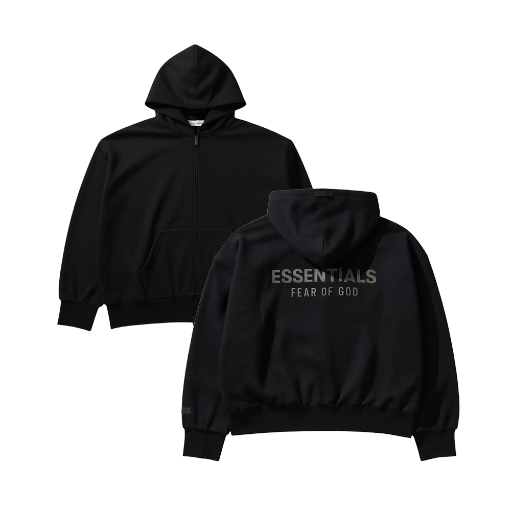 [15%쿠폰]피어오브갓 에센셜 백로고 후드집업 블랙