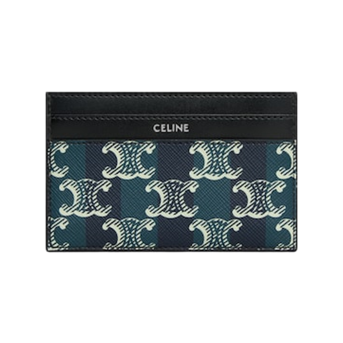 셀린느 트리옹프 카프스킨 스트라이프 미디움 카드 홀더 블랙 네이비 블루
