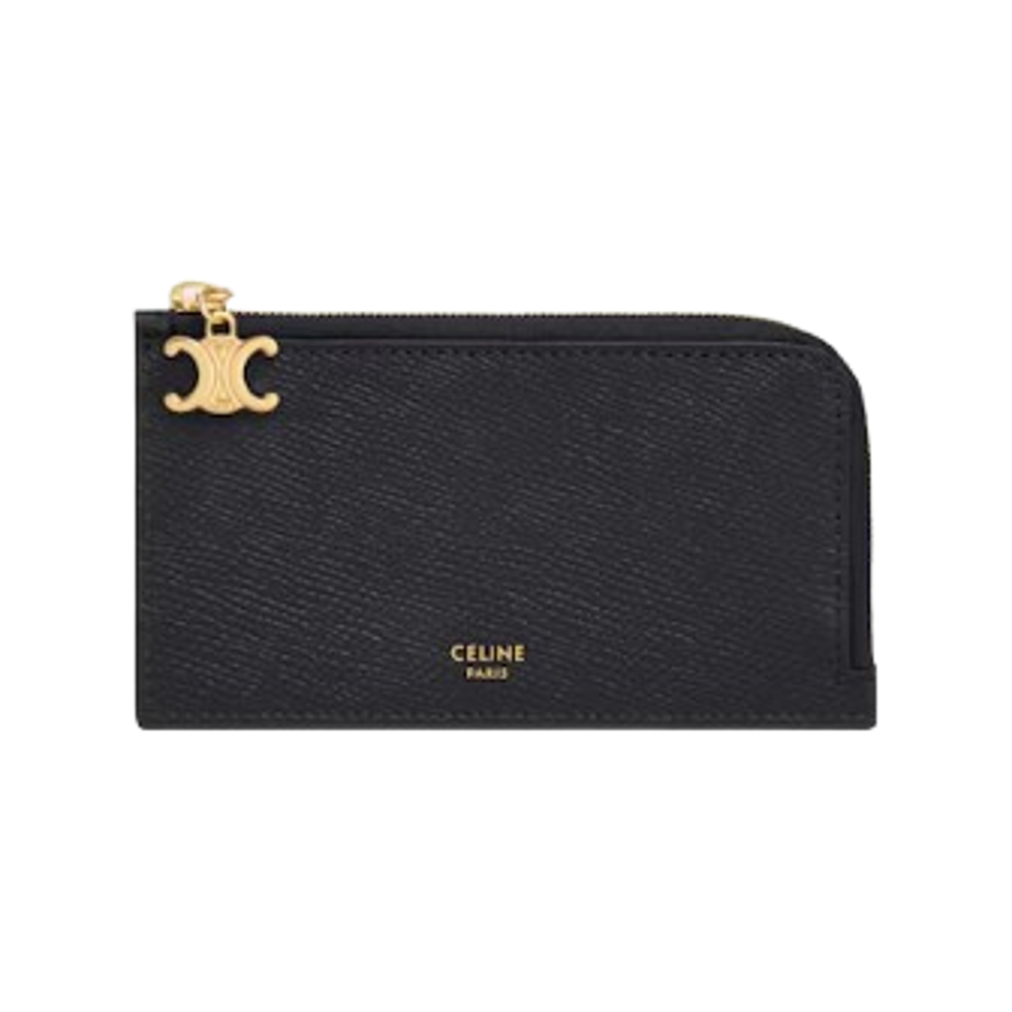 셀린느 지퍼 컴팩트 카드 홀더 그레인드 카프스킨 블랙