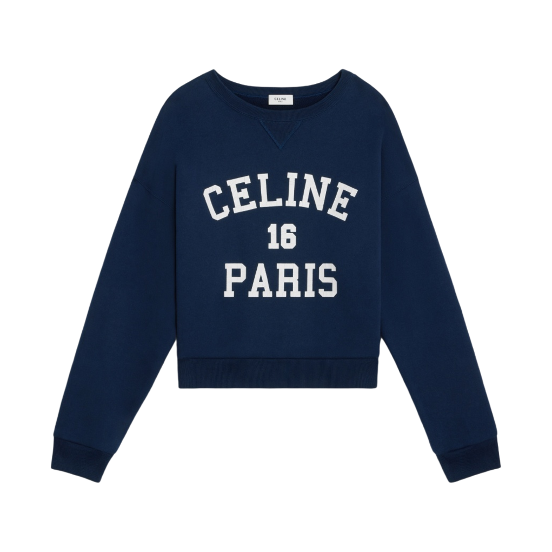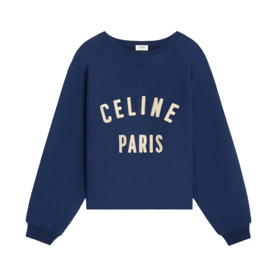 셀린느 코튼 플리스 레귤러 스웨트셔츠 네이비 에크루