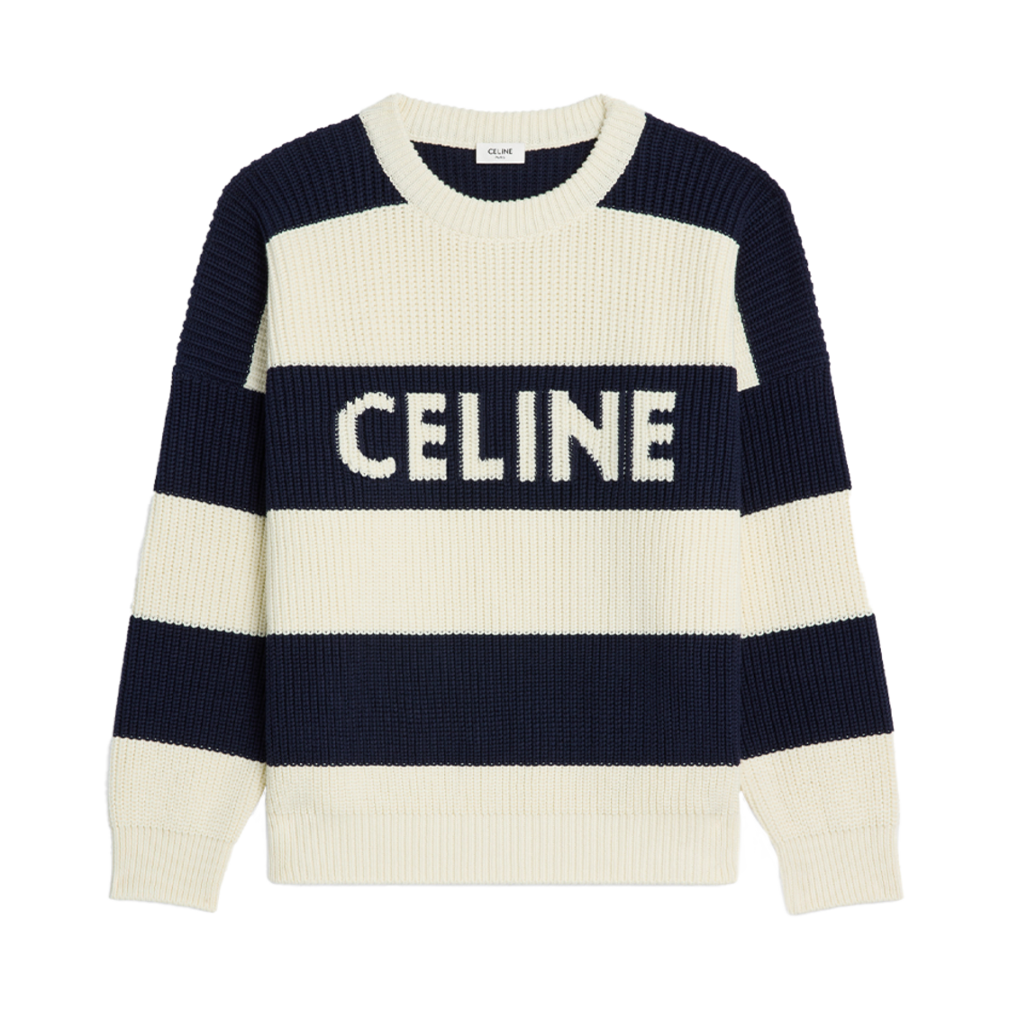 셀린느 오버사이즈 코튼 스트라이프 스웨트셔츠 에크루 네이비