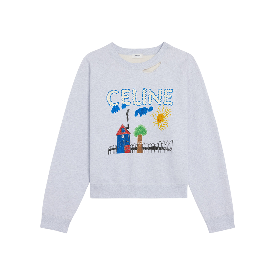 셀린느 레귤러 스웨트셔츠 코튼 플리스 페일 그레이 멀티컬러