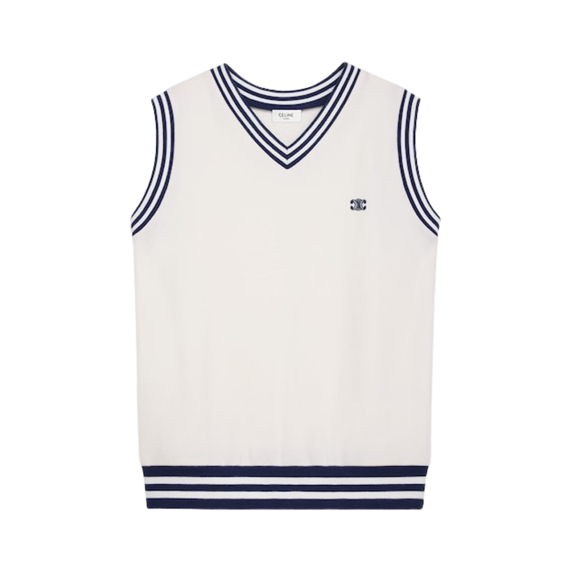 (W) 셀린느 슬리브리스 스웨트셔츠 코튼 플리스 오프 화이트 네이비