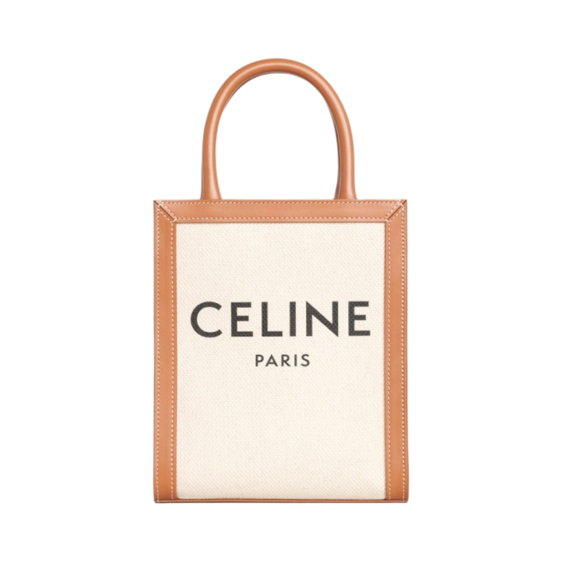 셀린느 프린트 텍스타일 & 카프스킨 미니 버티컬 카바스 내츄럴 탄