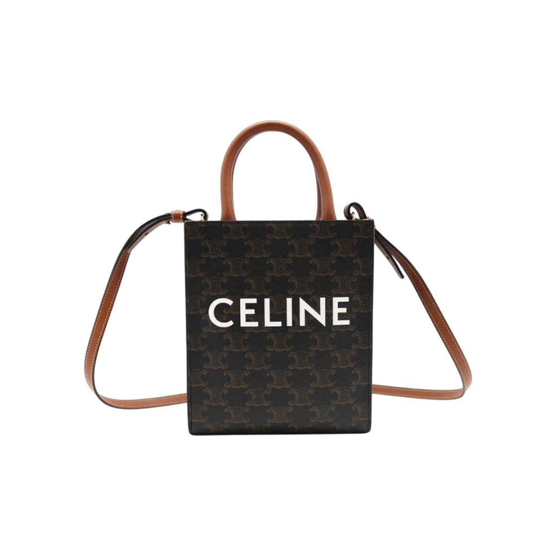 셀린느 트리옹프 캔버스 & 셀린느 프린트 카프스킨 미니 버티컬 카바스 탄