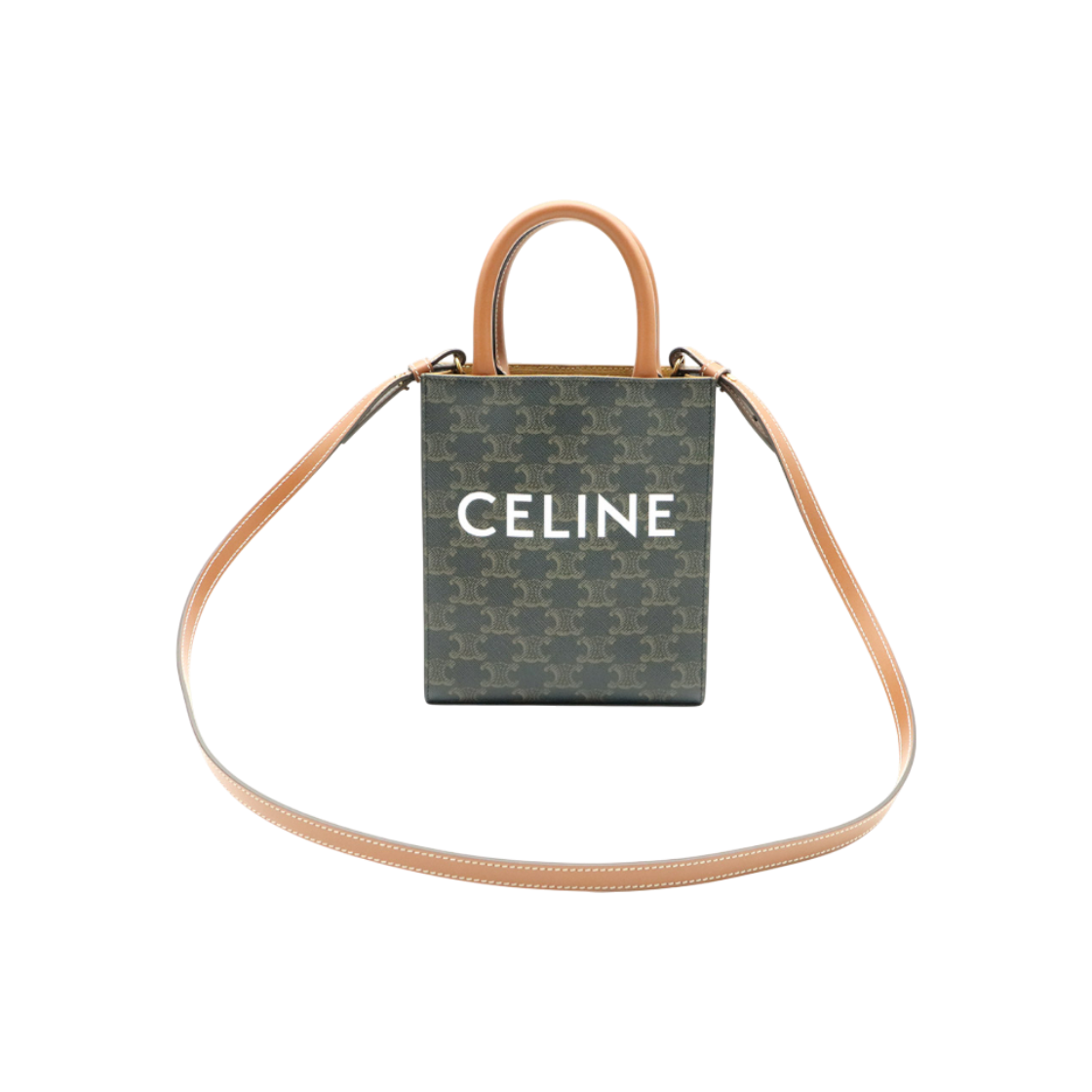 셀린느 트리오페 캔버스 탄 카프스킨 카바스 미니 버티컬 2WAY