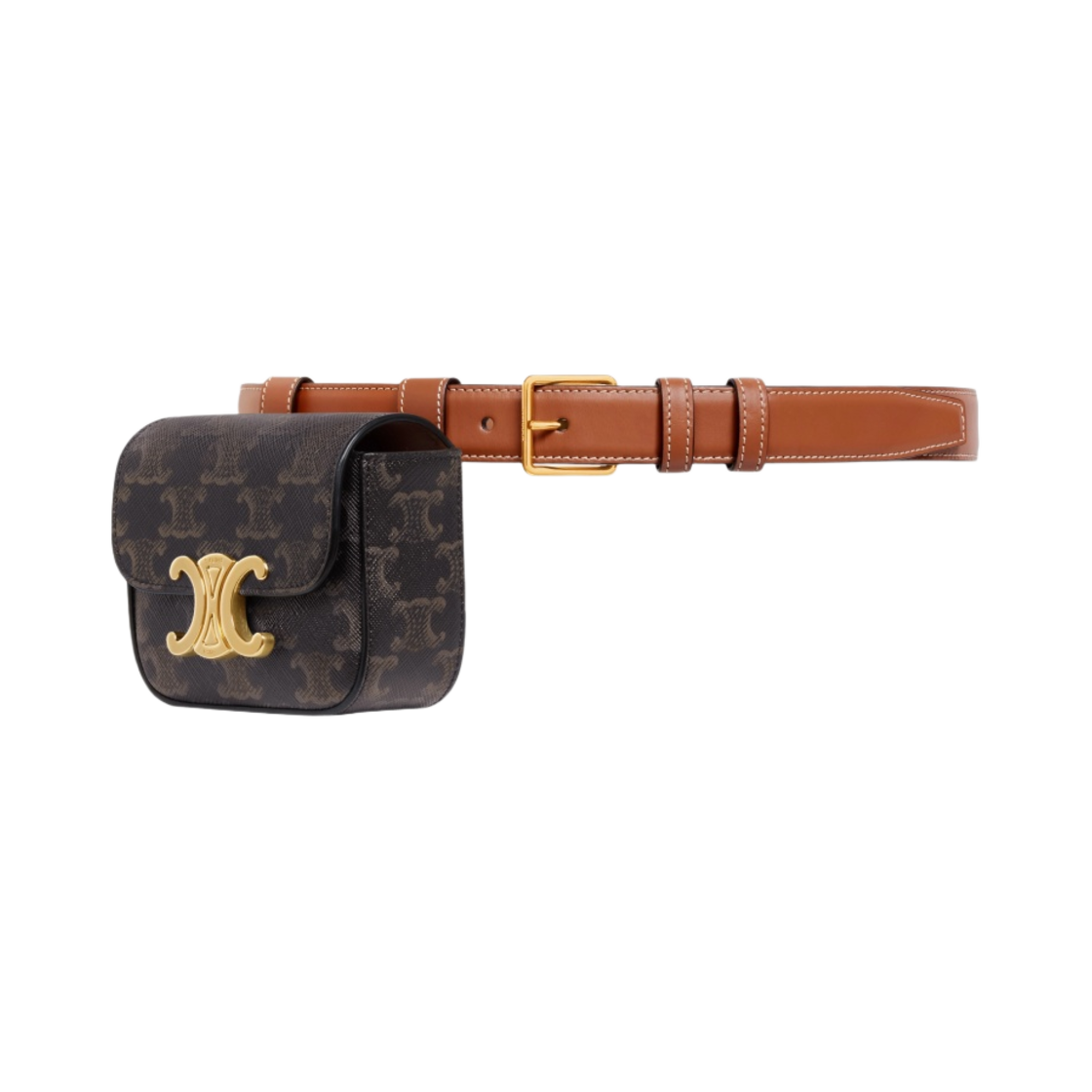 셀린느 트리옹프 캔버스 카프스킨 벨트 백 트리옹프 벨트 탄