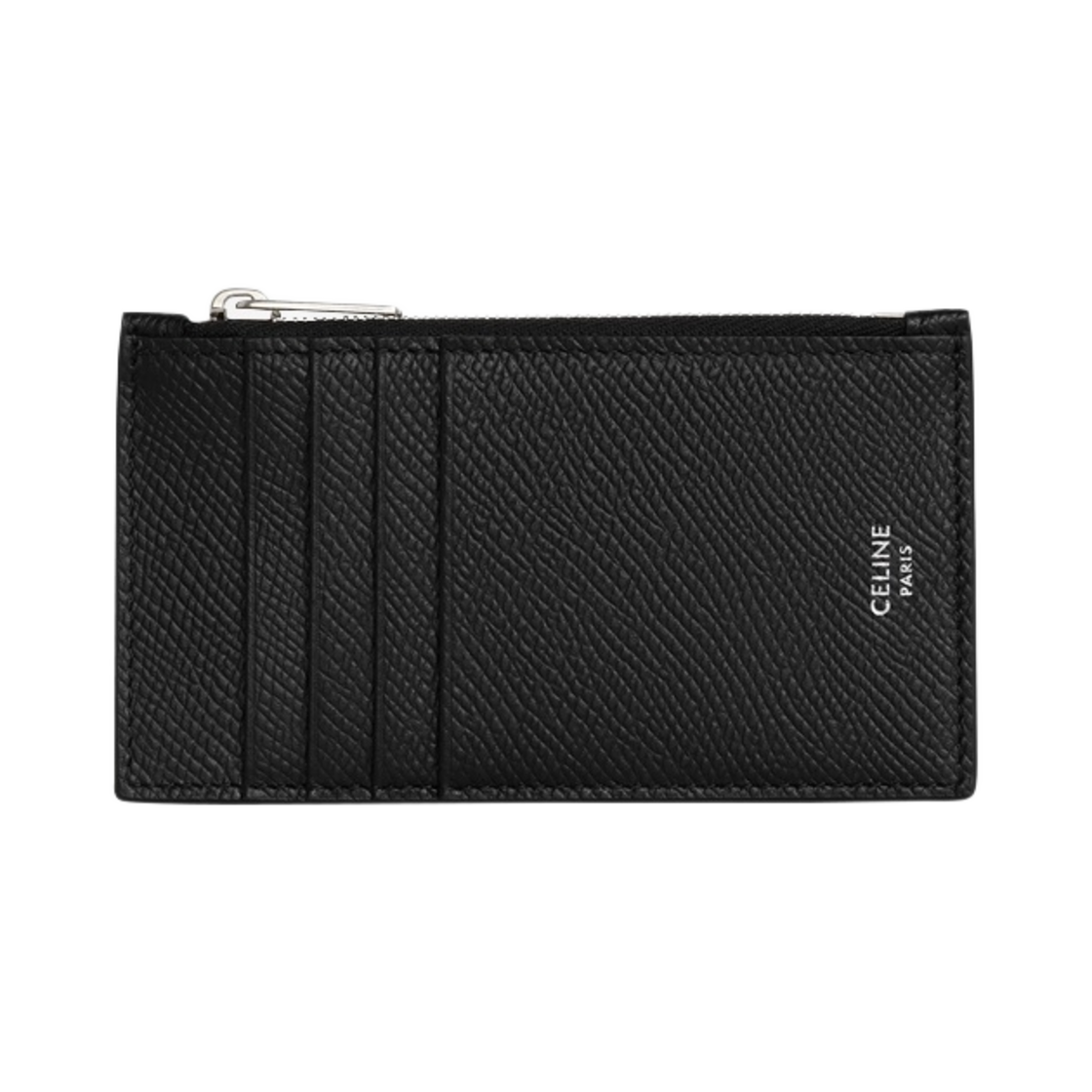 셀린느 지퍼 컴팩트 카드 홀더 그레인드 카프스킨 블랙