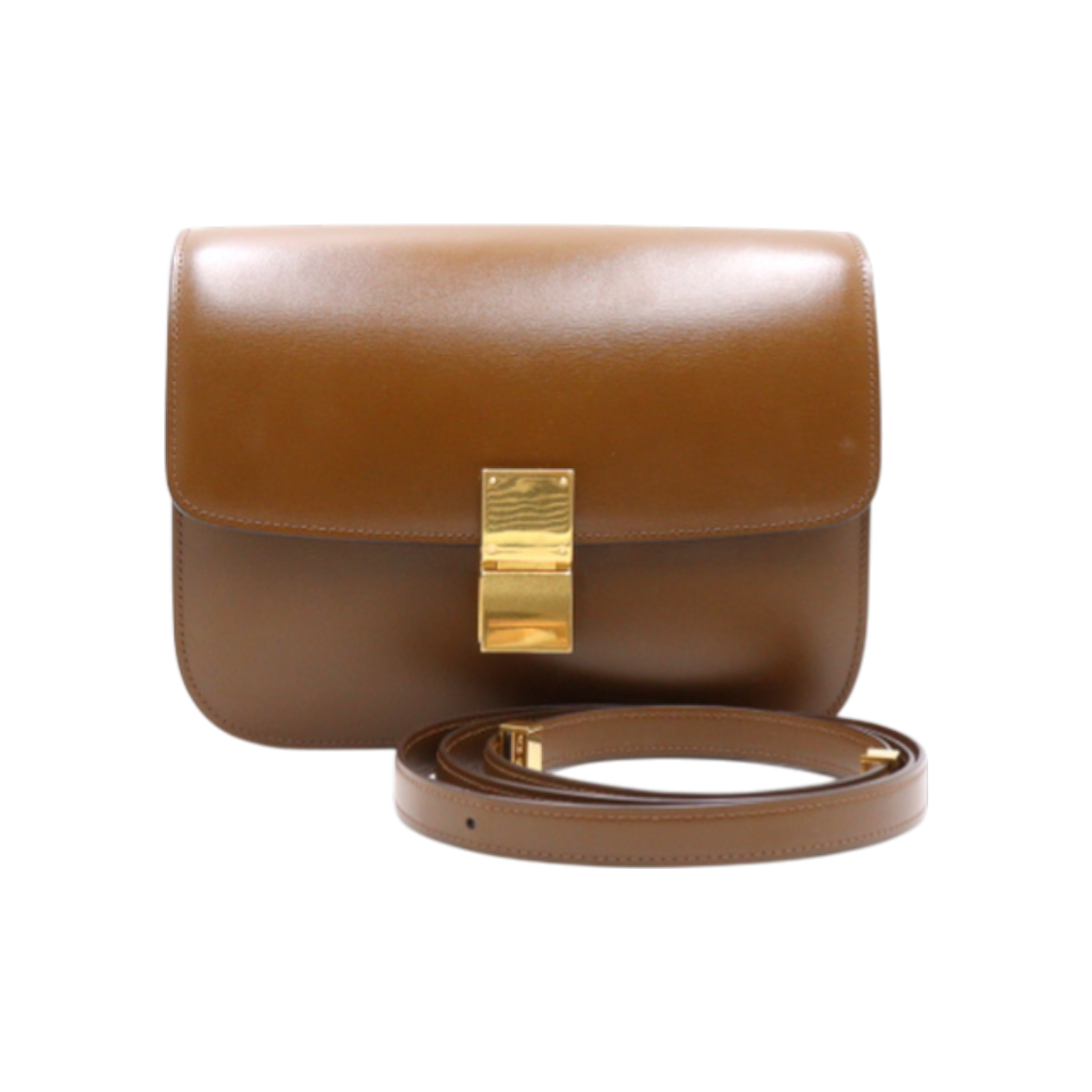 셀린느 189173DLS 미디엄 브라운 카프스킨 클래식박스 숄더백 겸 크로스백aa58467