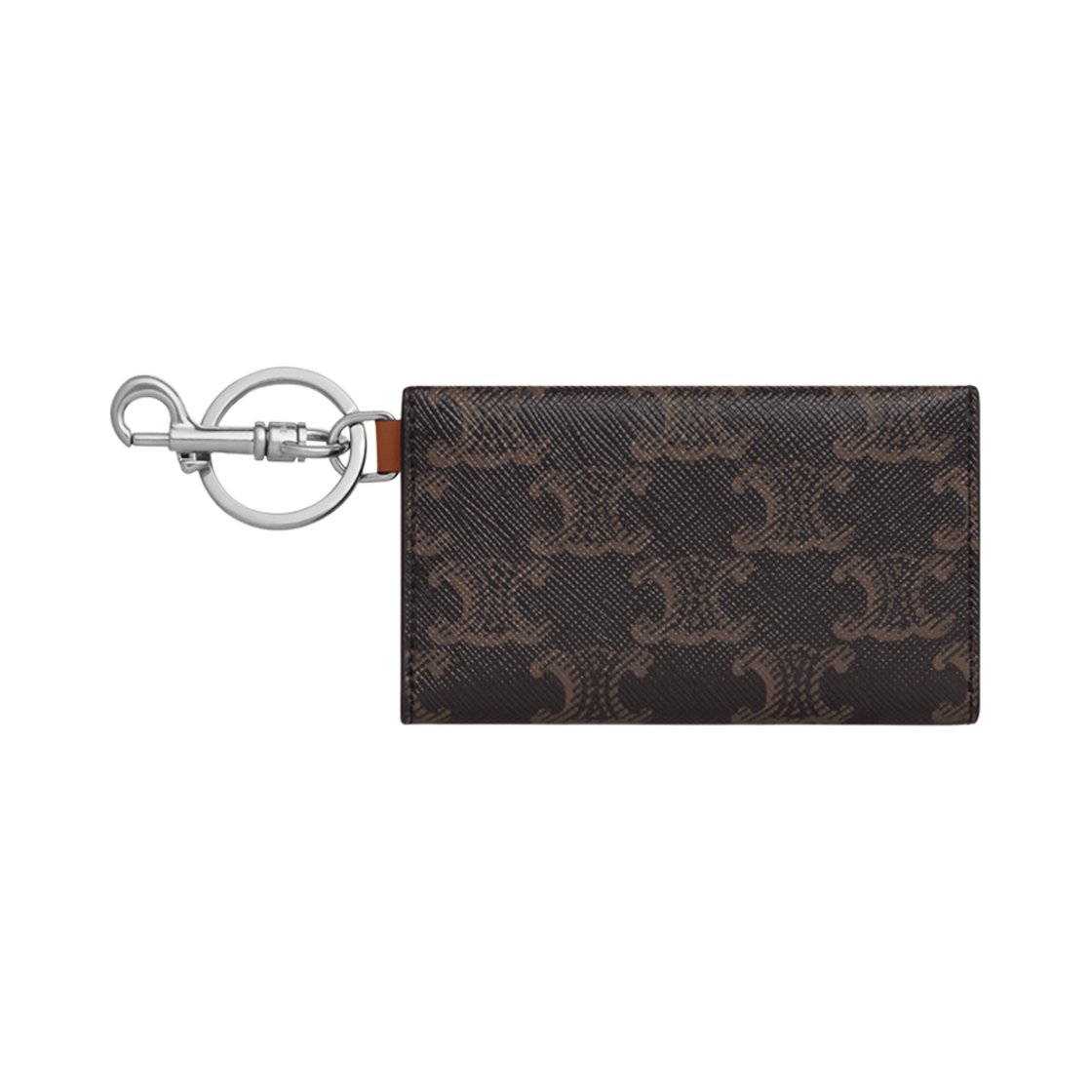셀린느 키링 포켓 카드 홀더 트리옹프 캔버스 앤 카프스킨 탄