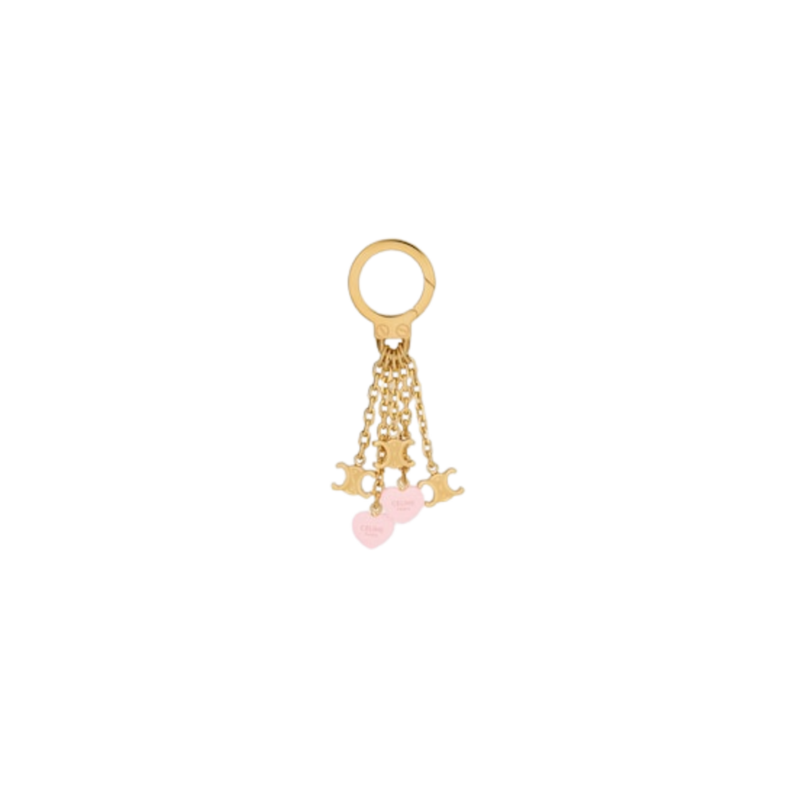 셀린느 트리옹프 폼폼 키링 하트 셔링 앤 카프스킨 골드 피니싱 핑크
