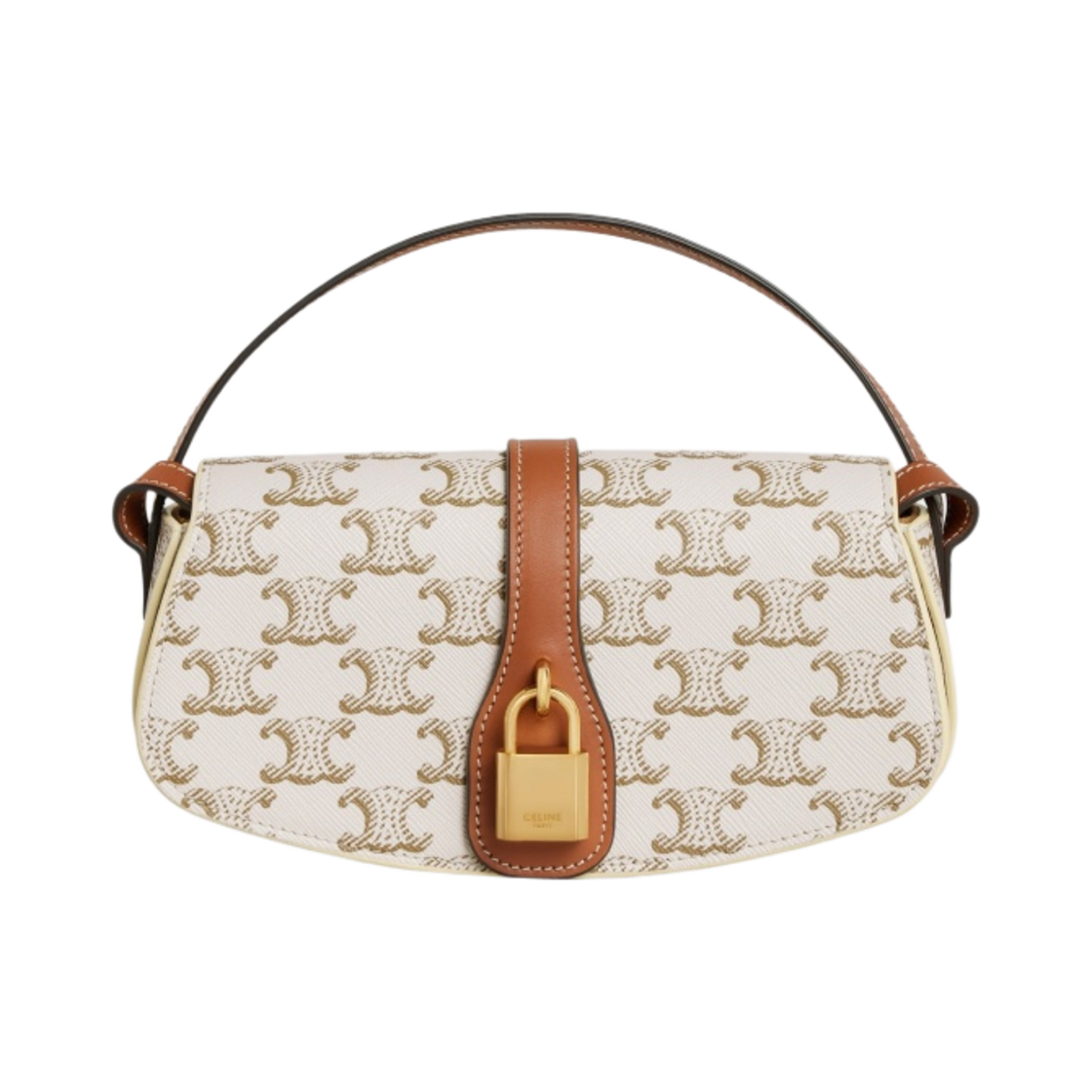 셀린느 클러치 온 스트랩 타부 트리옹프 캔버스 카프스킨 화이트 탄