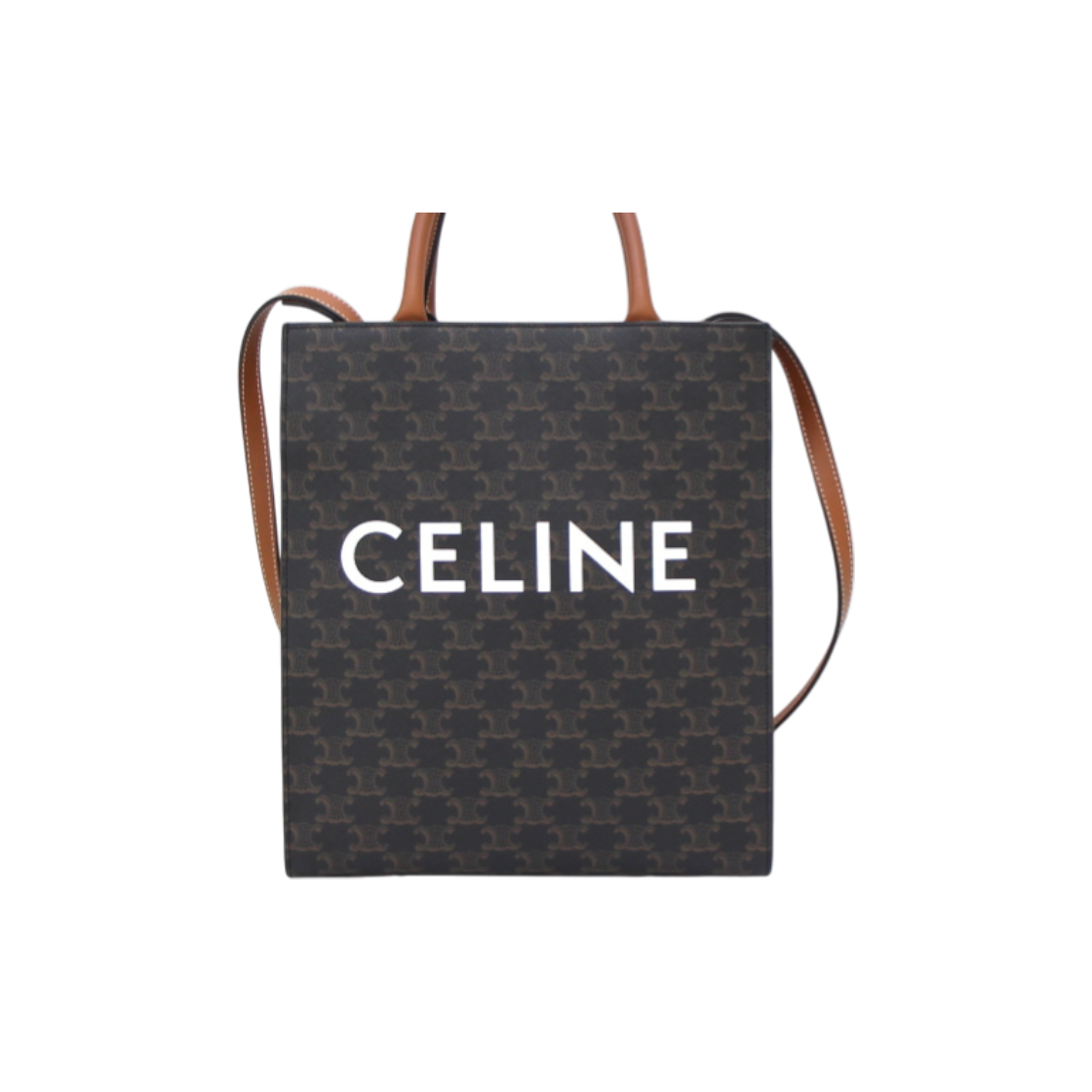 셀린느 스몰 카바스 버티컬 트리옹프 캔버스 카프스킨 탄