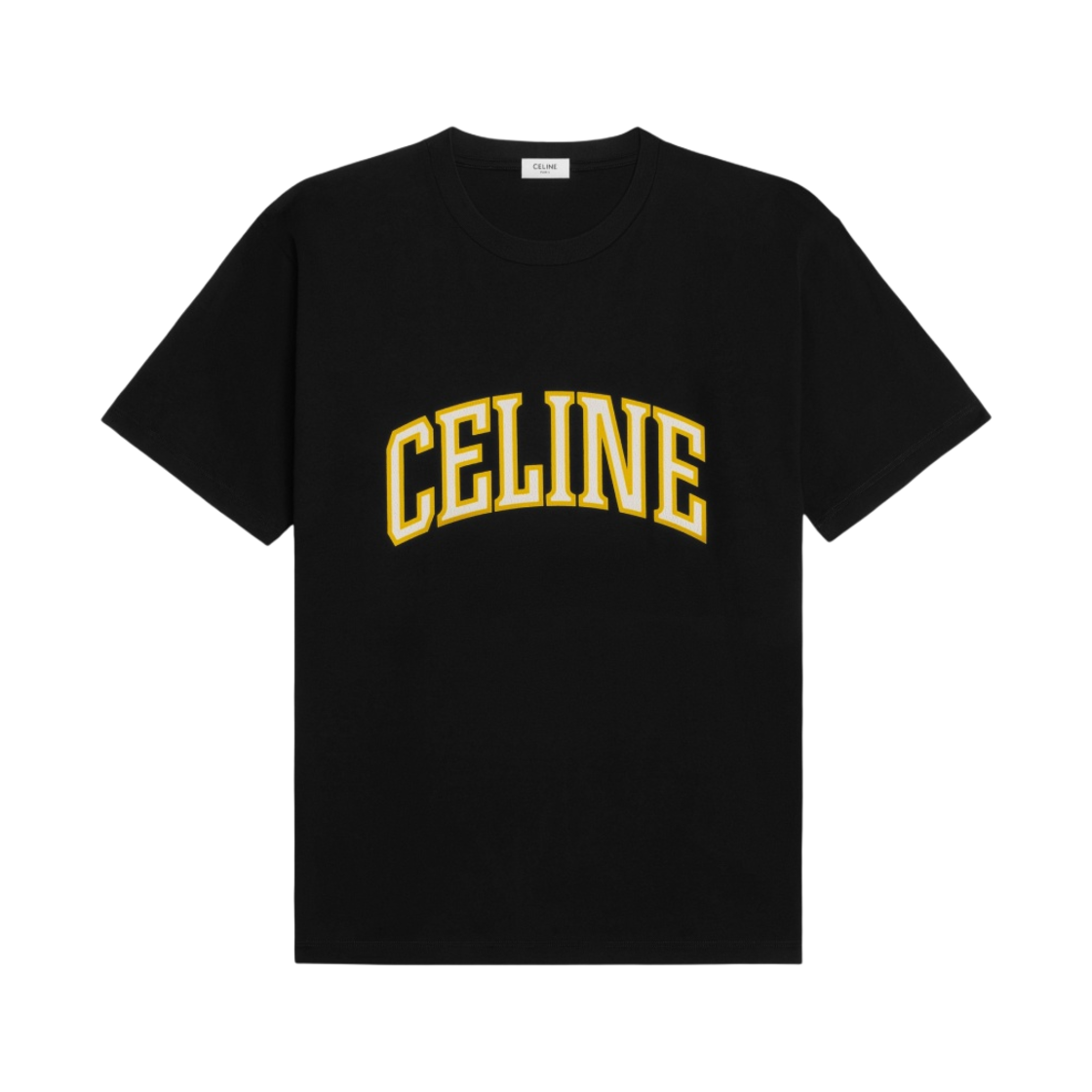 셀린느 코튼 저지 루즈 티셔츠 블랙 골든 옐로우 오프 화이트