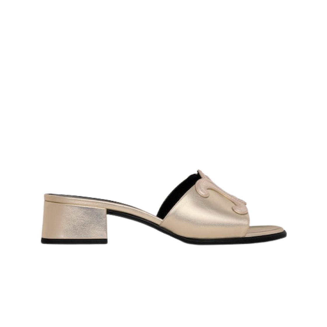 (W) 셀린느 클레망스 라미네이티드 카프스킨 테쥬스 스템프드 뮬 플래티늄