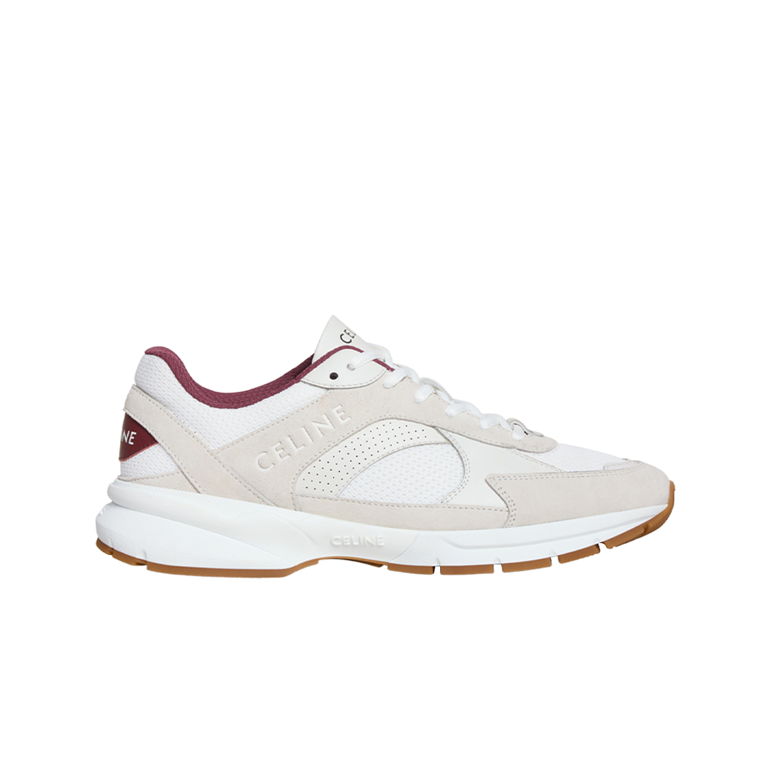 셀린느 러너 CR-03 로우 레이스업 스니커 메쉬, 스웨이드 카프스킨 앤 퍼포레이티드 카프스킨 옵틱 화이트 베이지 버건디