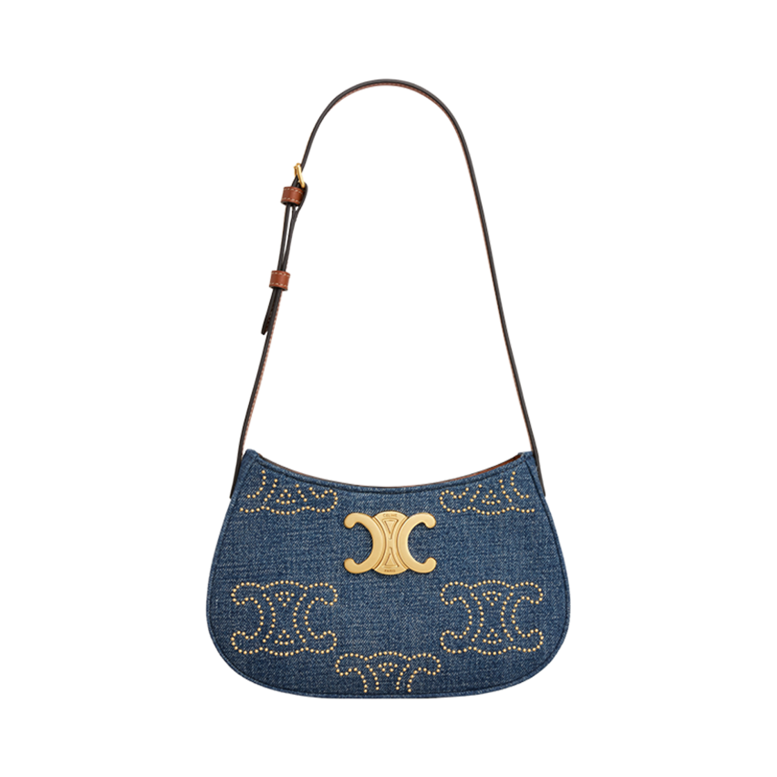 셀린느 미디움 틸리 백 데님 트리옹프 스터즈 앤 카프스킨 데님