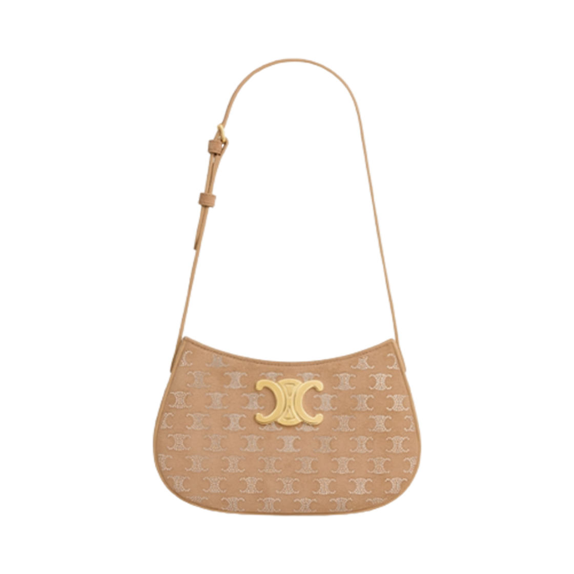 (W) 셀린느 트리옹프 스트라스 스웨이드 카프스킨 미디움 틸리 백 라이트 카멜