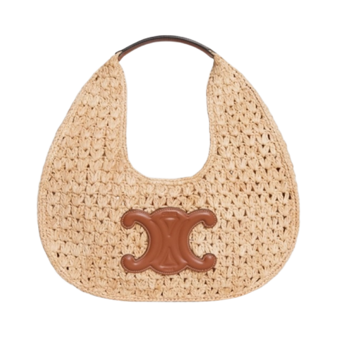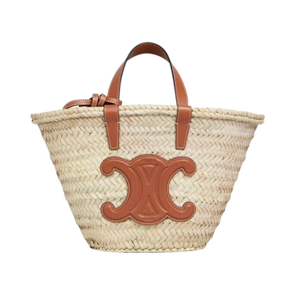 셀린느 라피아 & 카프스킨 미디움 브레이디드 트리옹프 클래식 파니에 탄