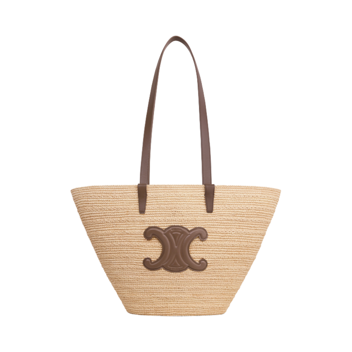 셀린느 서플 스몰 트리옹프 셀린느 클래식 파니에 라피아 카프스킨 탄