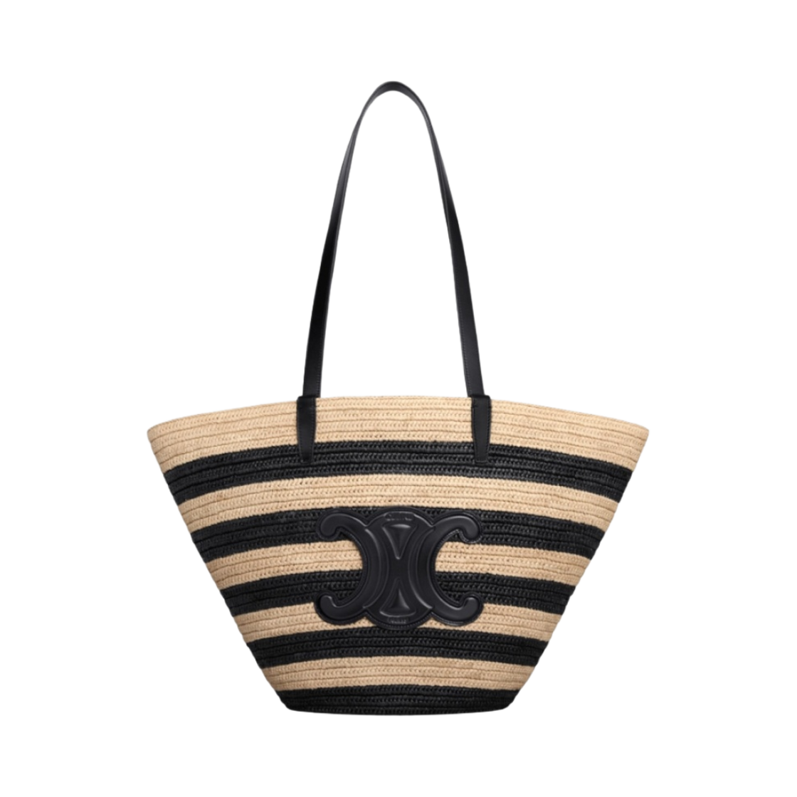 셀린느 스트라이프 쿠핀 셀린느 클래식 파니에 라피아 카프스킨 내츄럴 블랙