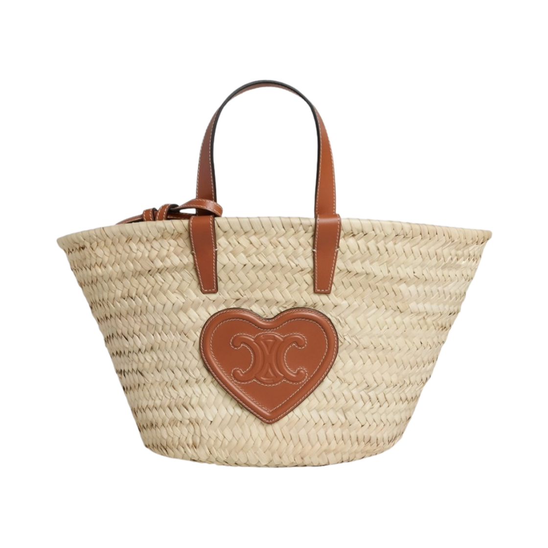 셀린느 라피아 & 카프스킨 하트패치 틴 트리옹프 셀린느 클래식 파니에 탄