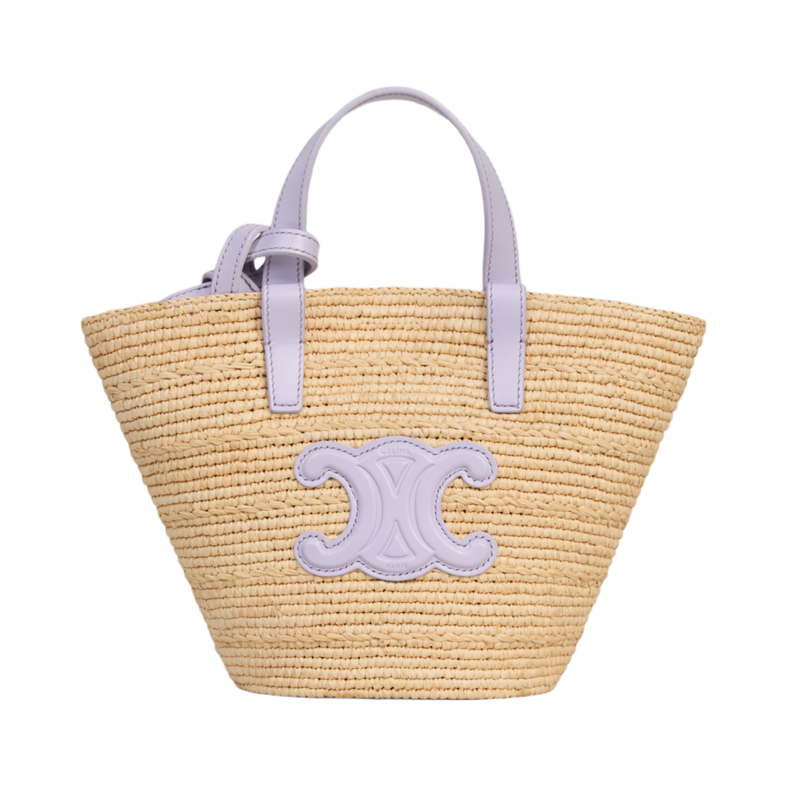 셀린느 서플 스몰 트리옹프 셀린느 클래식 파니에 라피아 카프스킨 탄
