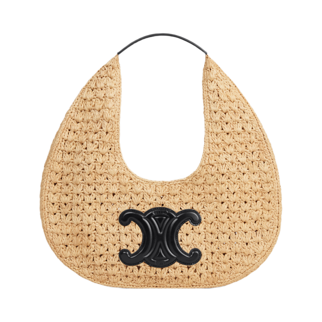 셀린느 클래식 파니에 호보백 라피아 앤 카프스킨 내츄럴 블랙