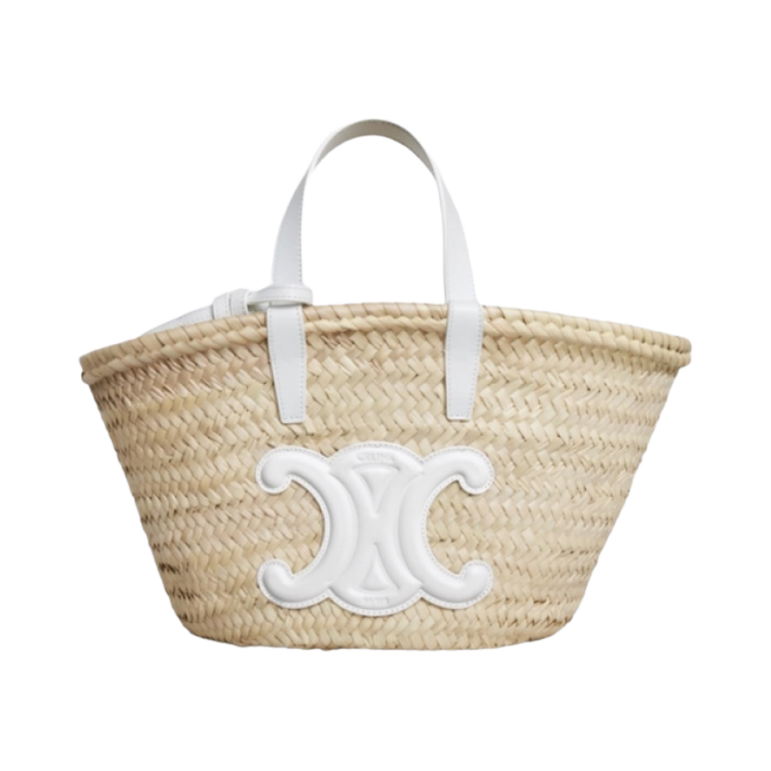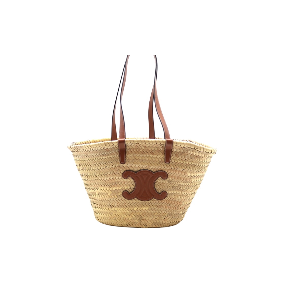 셀린느 라피아 & 카프스킨 미디움 브레이디드 트리옹프 클래식 파니에 탄