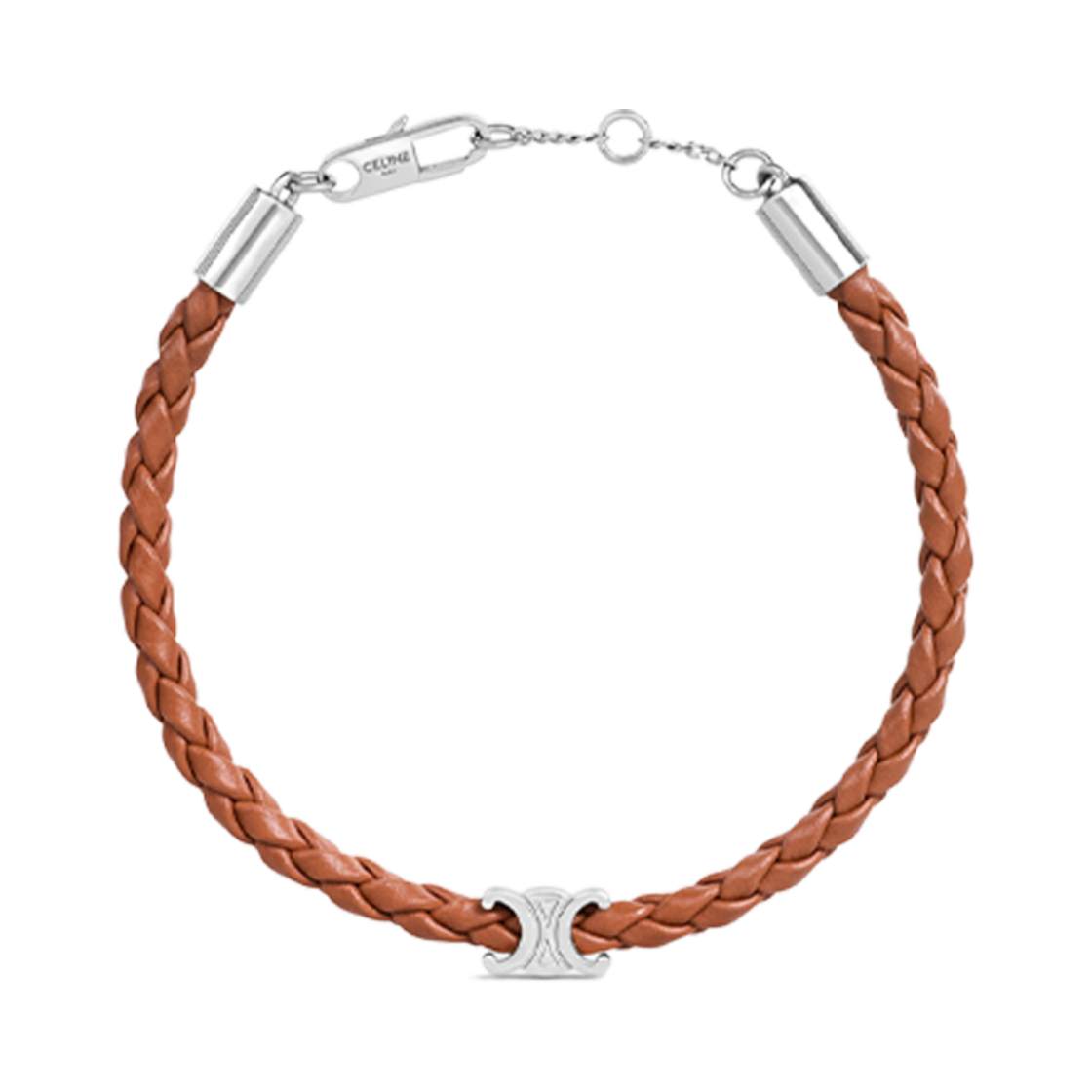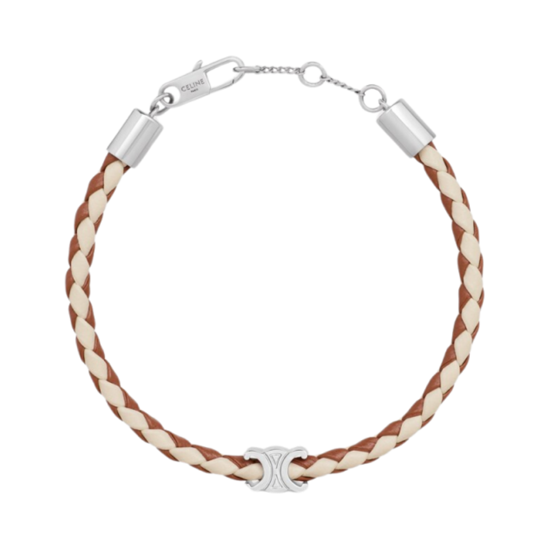 셀린느 트리옹프 비치 브레이슬릿 스무스 카프스킨 앤 브라스 로듐 피니시 탄 실버