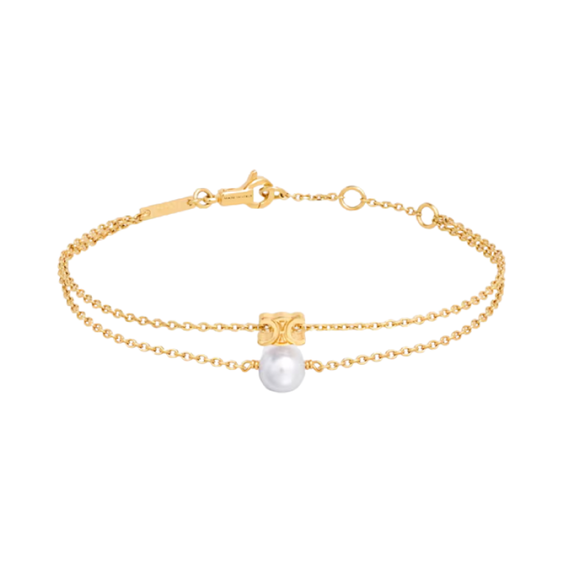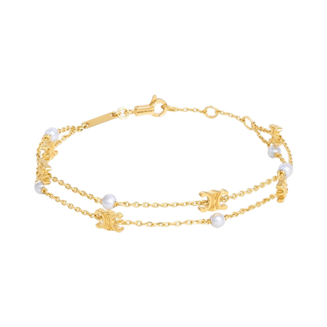 (W) 셀린느 트리옹프 펄 더블 브레이슬릿 브래스 골드 피니쉬 레진 펄 골드 아이보리