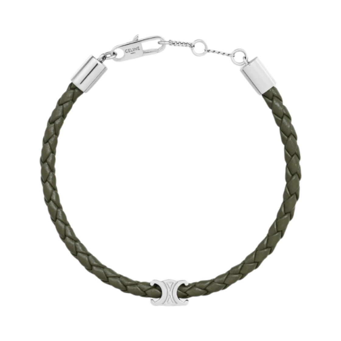 셀린느 브래스 스무스 카프스킨 트리옹프 비치 브레이슬릿 카키 실버
