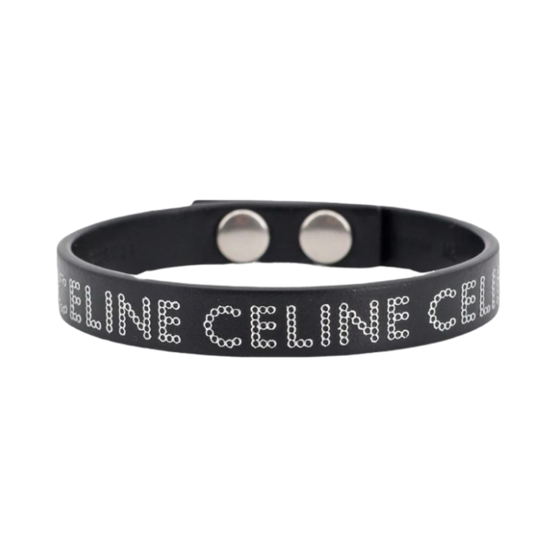 셀린느 모노크롬 스터드 로고 레더 브레이슬릿 블랙