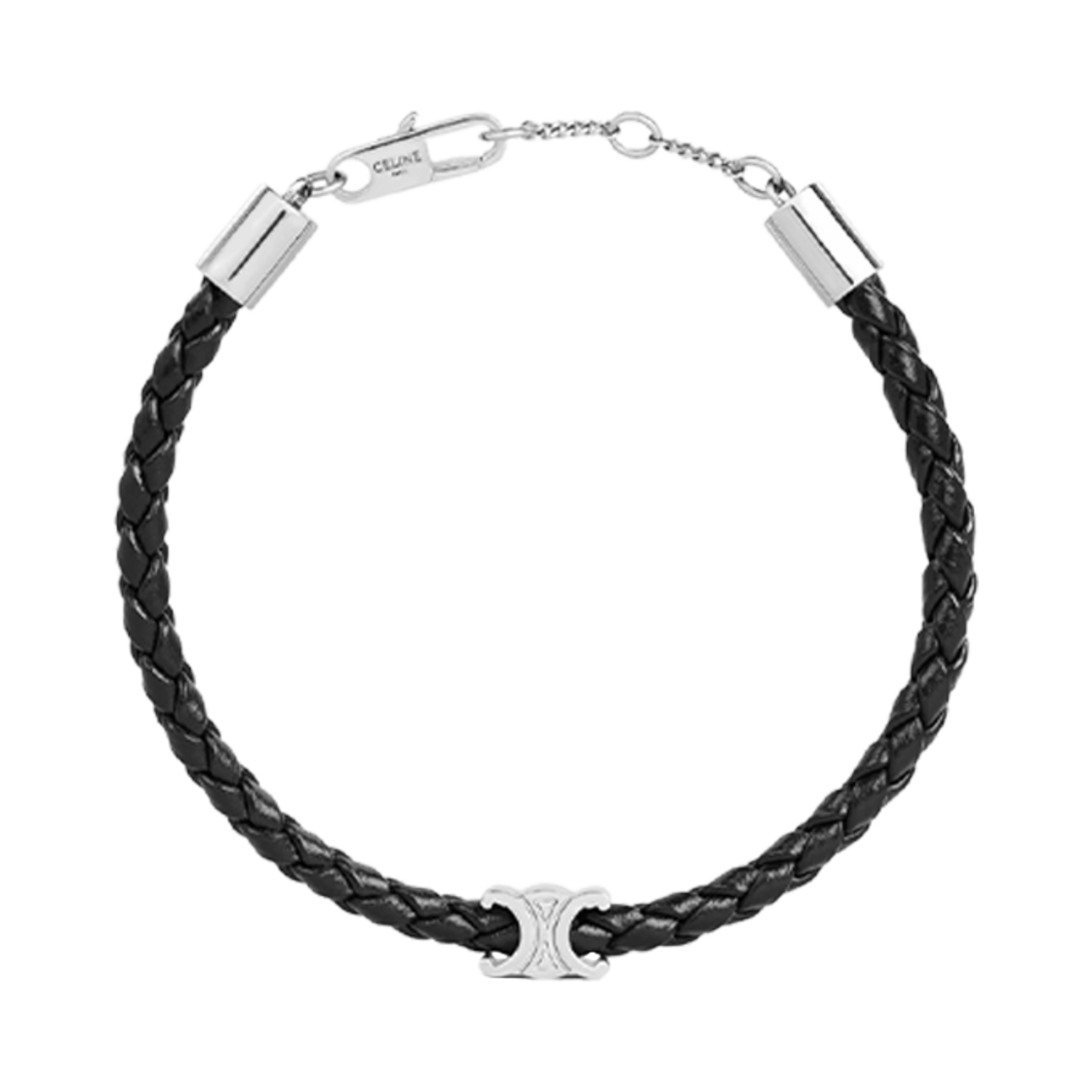 셀린느 트리옹프 비치 브레이슬릿 스무스 카프스킨 앤 브래스 로듐 피니쉬 블랙 실버