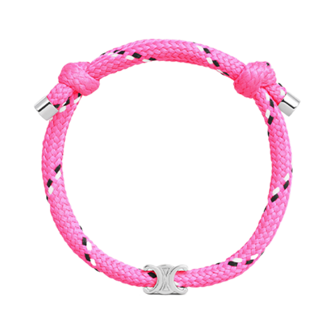 셀린느 트리옹프 비치 브레이슬릿 폴리에스터 앤 브라스 로듐 피니시 플래시 핑크 실버