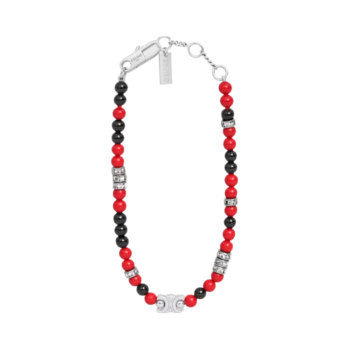 셀린느 산 오노프레 트리옹프 브레이슬릿 오닉스 레진 펄 스트라스 브래스 로듐 피니쉬 레드 블랙