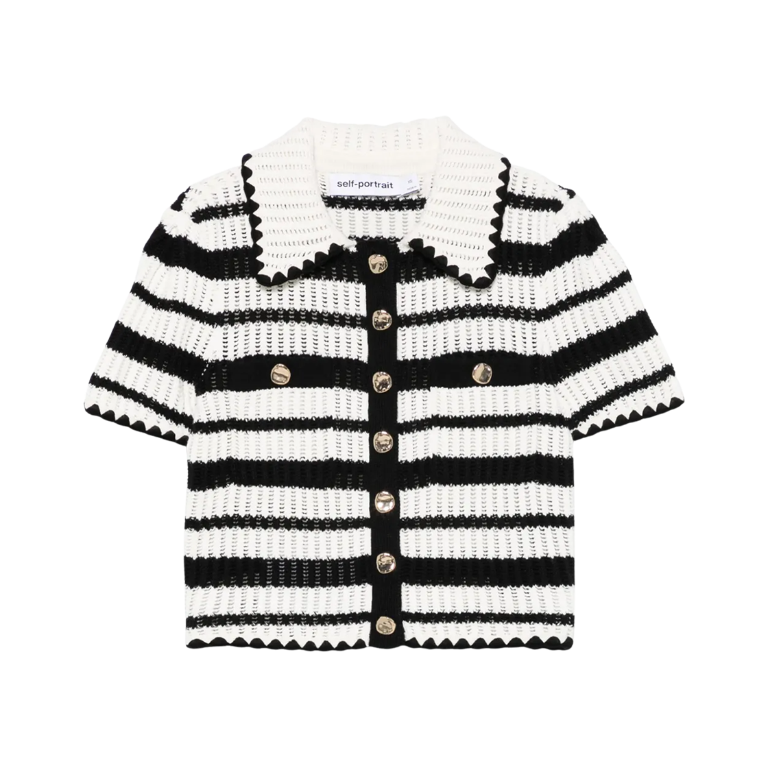 (W) 셀프 포트레이트 스트라이프 크로쉐 탑 크림 블랙