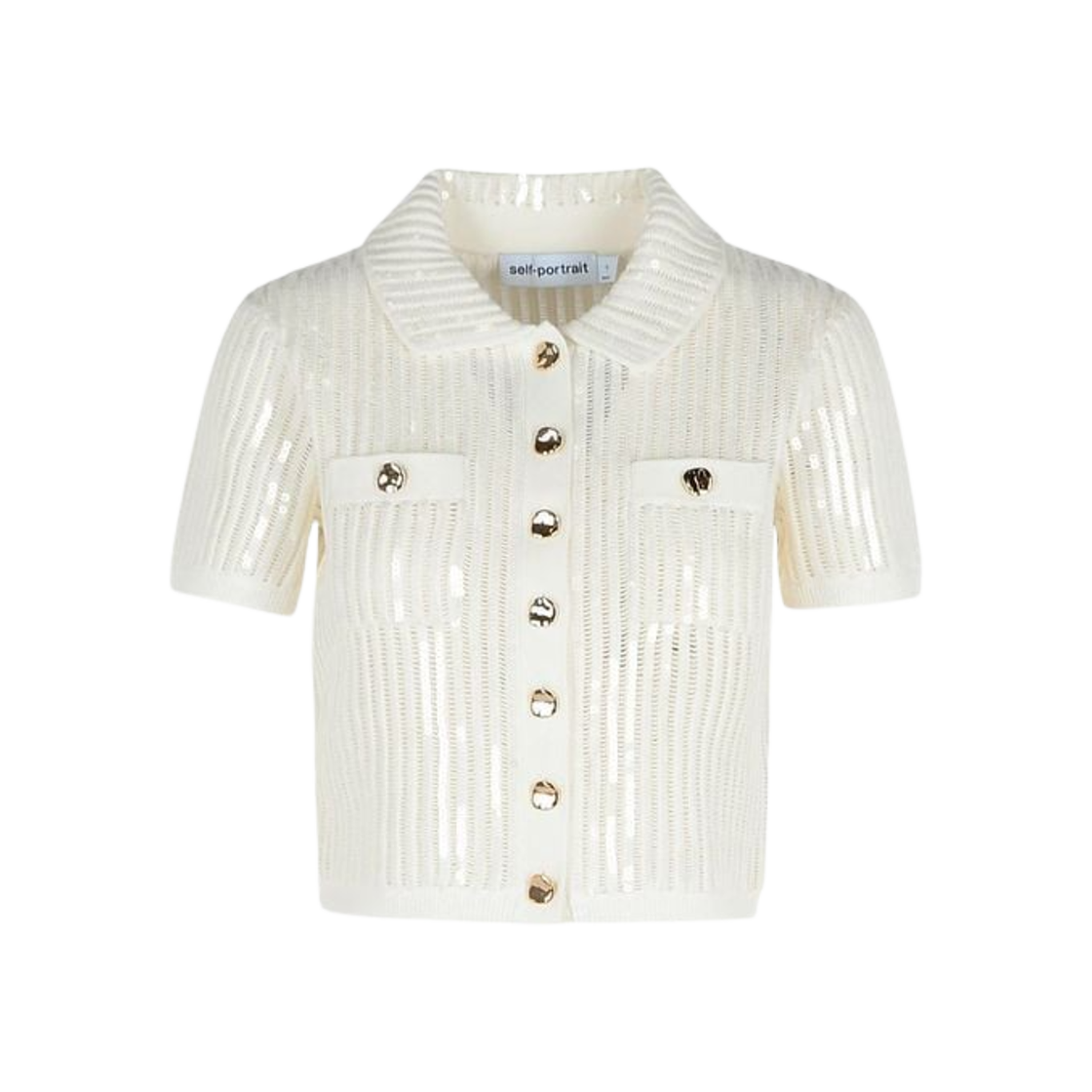 (W) 셀프 포트레이트 시퀸 니트 크롭 가디건 크림