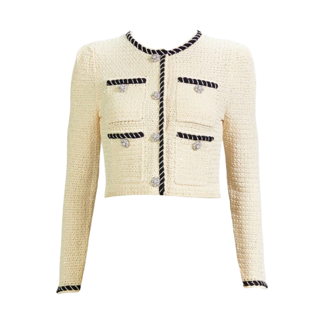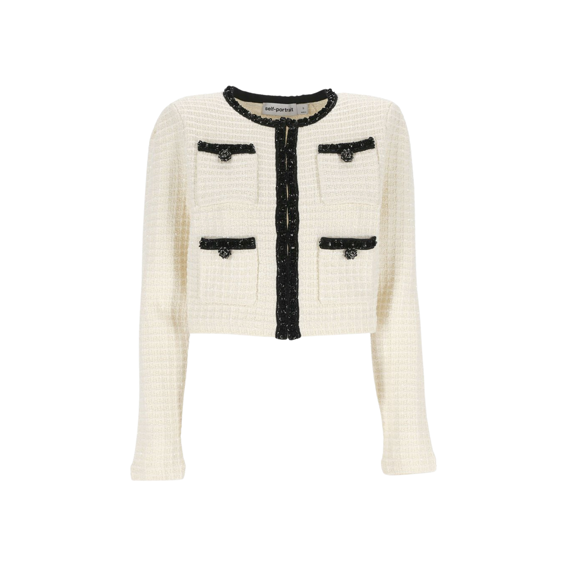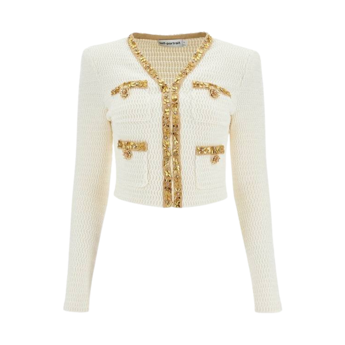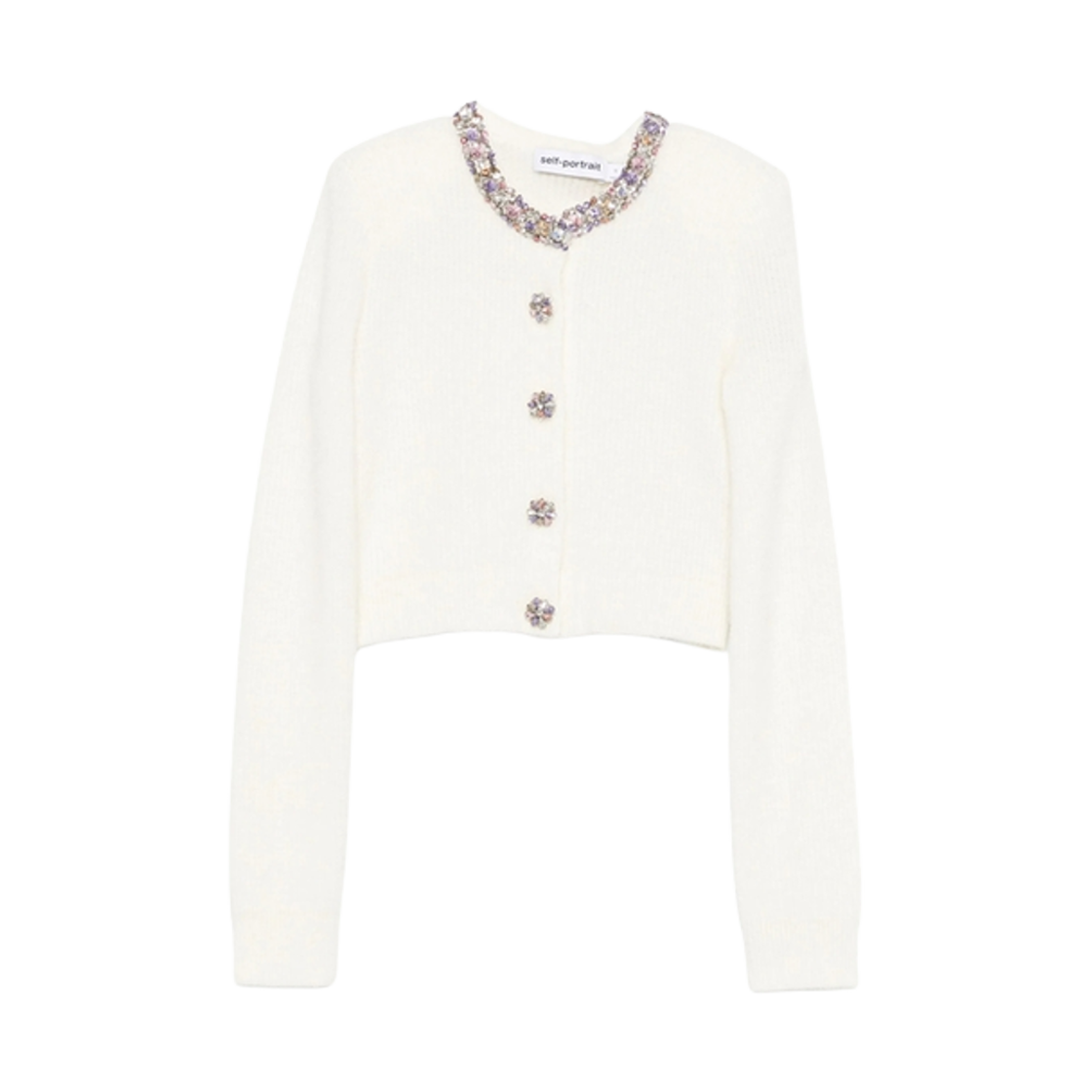 셀프 포트레이트 우먼 엠벨리시드 트림 가디건 크림- 25FW